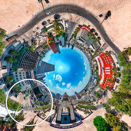 Fotografía 360° de unos edificios en el centro de la ciudad de México